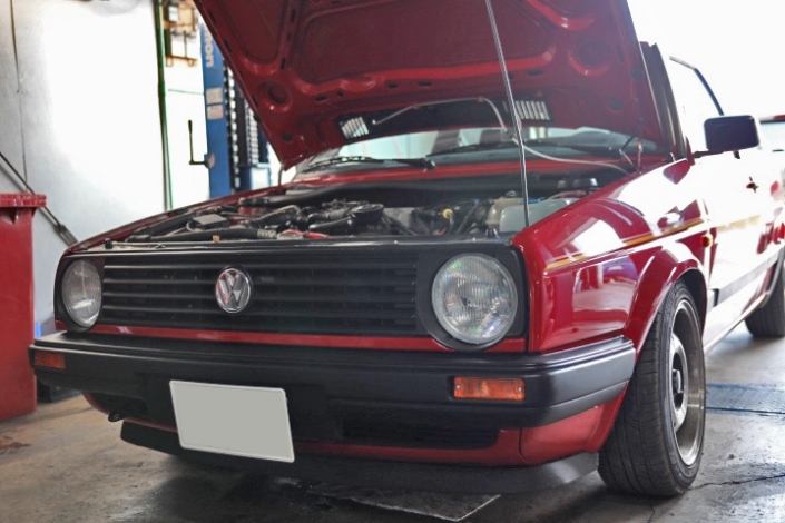 ゴルフ2 12ヶ月点検 ラジエターアッパーホースフランジ交換。 (冷却水漏れ) エンジンオイル交換 モチュール H-TECH PRIME 5W40(メーカーアプルーバルVW50200) 車両情報 年式 1992y 型式 E-19RV 車種 ゴルフ2CLI