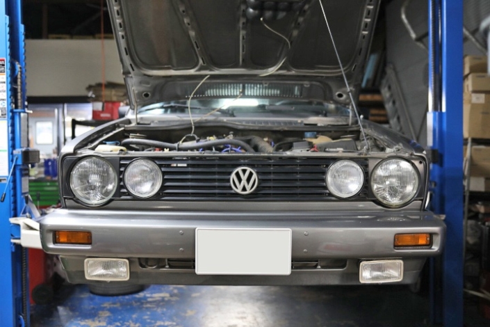 ゴルフ1カブリオレ 車検 継続検査のご依頼です。 Vベルト交換 エンジンオイル交換 モチュール H-TECH PRIME 5W40(メーカーアプルーバルVW502 00) 車両情報 年式 1990 型式 E-152HK 車種 ゴルフ1カブルオレ