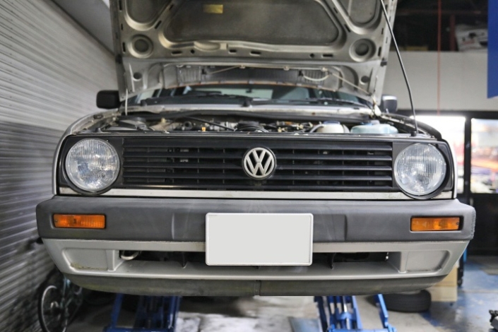 ゴルフ2 車検 MOTULオイル 継続検査のご依頼です。 エンジンオイル交換 モチュール H-TECH PRIME 5W40(メーカーアプルーバルVW502 00) 車両情報 年式 1990 型式 E-19RV 車種 ゴルフ2