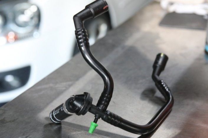 ゴルフ5Gti バキュームホース交換 ブレーキバキュームパイプとキャニスターパイプに亀裂が入り2次エアーを吸って エンジン不調になりました。エンジン警告点灯。 両部品を交換。 車両情報 年式 2008y 型式 ABA-1KAXX 車種 ゴルフ5Gti