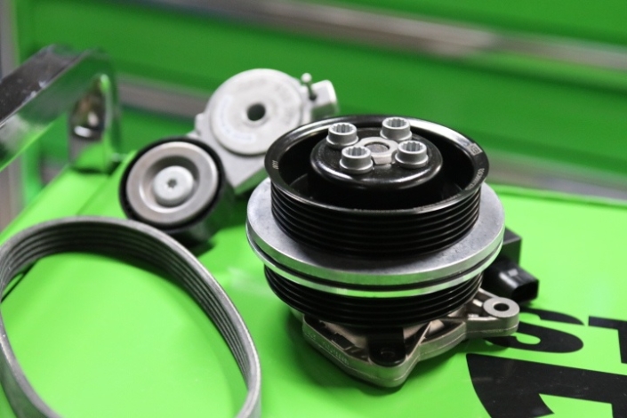 冷却水が漏れています。 ウオーターポンプを交換しました。 テンショナー、ベルトも交換。