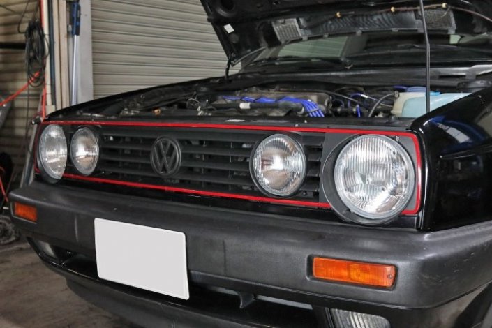 ゴルフ2GTI-16V 冷却水漏れ修理 1991yゴルフ2GTI ラジエターアッパーホースのフランジが劣化して冷却水漏れを起こしました。 車両情報 年式 1991y 型式 E-19PL 車種 ゴルフ2GTI