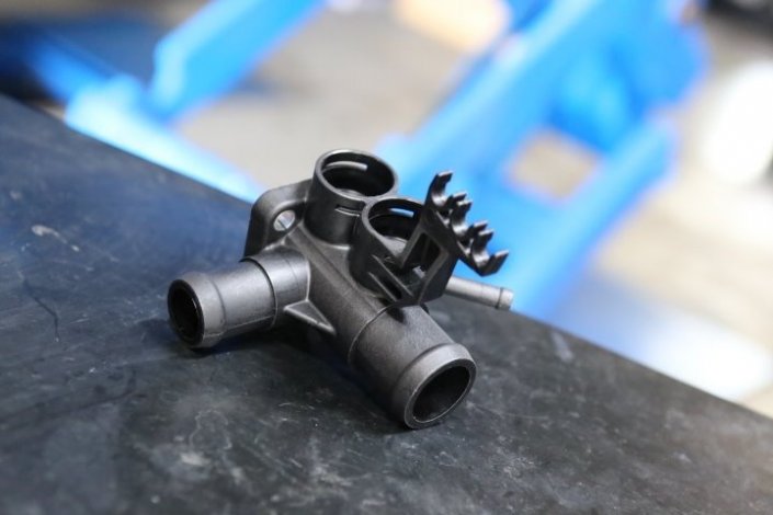 ゴルフ3GLI 冷却水漏れ エンジンリヤ側の冷却ホースフランジに亀裂が入り、冷却水漏れをおこしました。 下の画像はエンジンサイド側フランジ。車体正面のラジエターアッパーホースにつながっています。 今回は交換してません。 車両情報 年式 1998y 型式 E-1HAGG 車種 ゴルフ3GLI